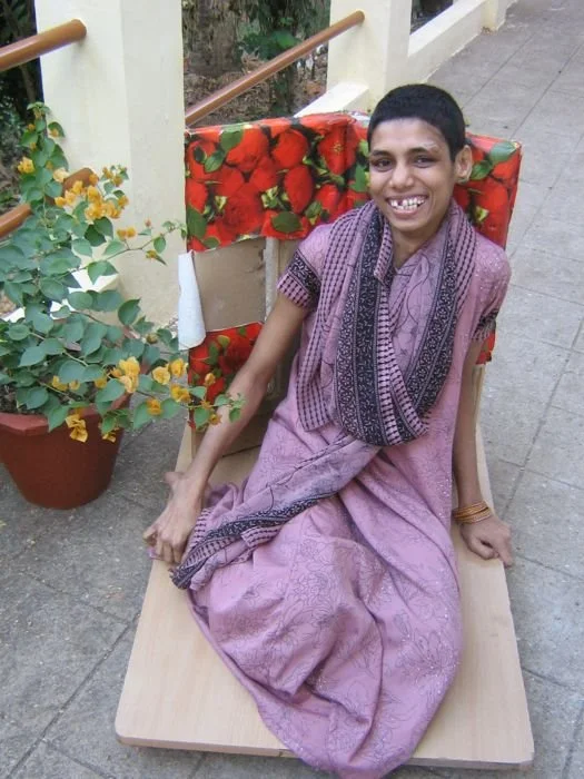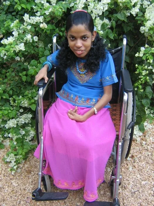 Aswathy Ashokkumar è una donna di 23 anni che si trova a Mercy Home dal 2001. A seguito di una paralisi cerebrale, le due gambe sono completamente paralizzate. Studia con buoni risultati.Era abbastanza autosufficiente ma ora una mano è diventata molto debole e necessita un aiuto quotidiano.Il padre è morto quando la ragazza aveva 13 anni per un attacco cardiaco; la mamma, pure affetta da problemi cardiaci, è mancata quando Aswathy aveva 19 anni. Essendo figlia unica, i parenti, non potendosene occupare, l’hanno portata al nostro ostello e vengono a trovarla due volte all’anno.